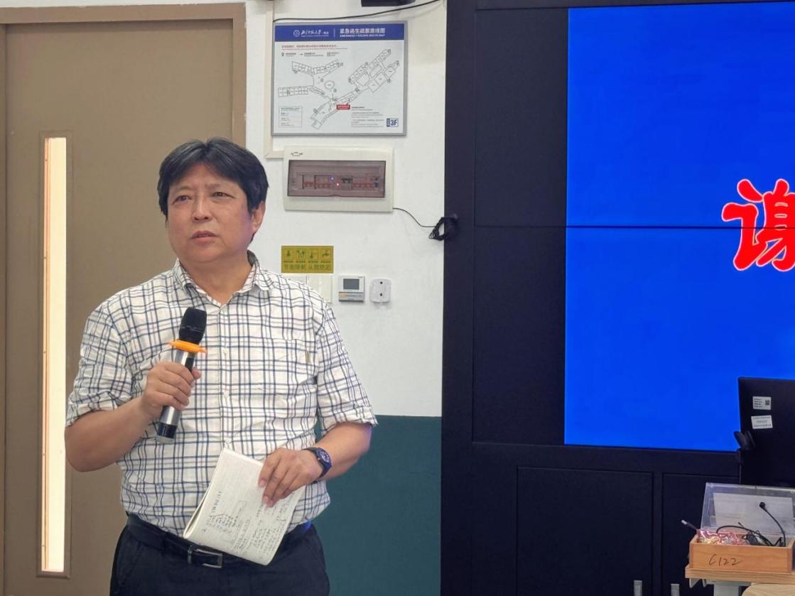 赵春明教授凭借其深厚的学术积淀与丰富的教学经验,围绕做好课程教学与建设的五对关系、个人实践及感想体会展开分享。首先他阐释了教育家精神的核心要义,指出“大先生”的“大”不在于学历、文凭、学校等外在条件,而体现在视野、仁爱、学识、格局、情怀、品位与境界的内在修为;随后聚焦 AI时代的教育变革,他提出需着重培育学生批判思考、独立判断、快速学习、信息筛选等八大能力,为高校教师的教学方向指明路径;同时,他结合当下大学教师所面临的学生课堂注意力分散等现实教学困境,深入探讨了教学内容与时俱新、教学方式优化等应对策略。整场讲座兼具理论高度与实践指导意义,为在场教师提供了课程教学与建设的全面思路。